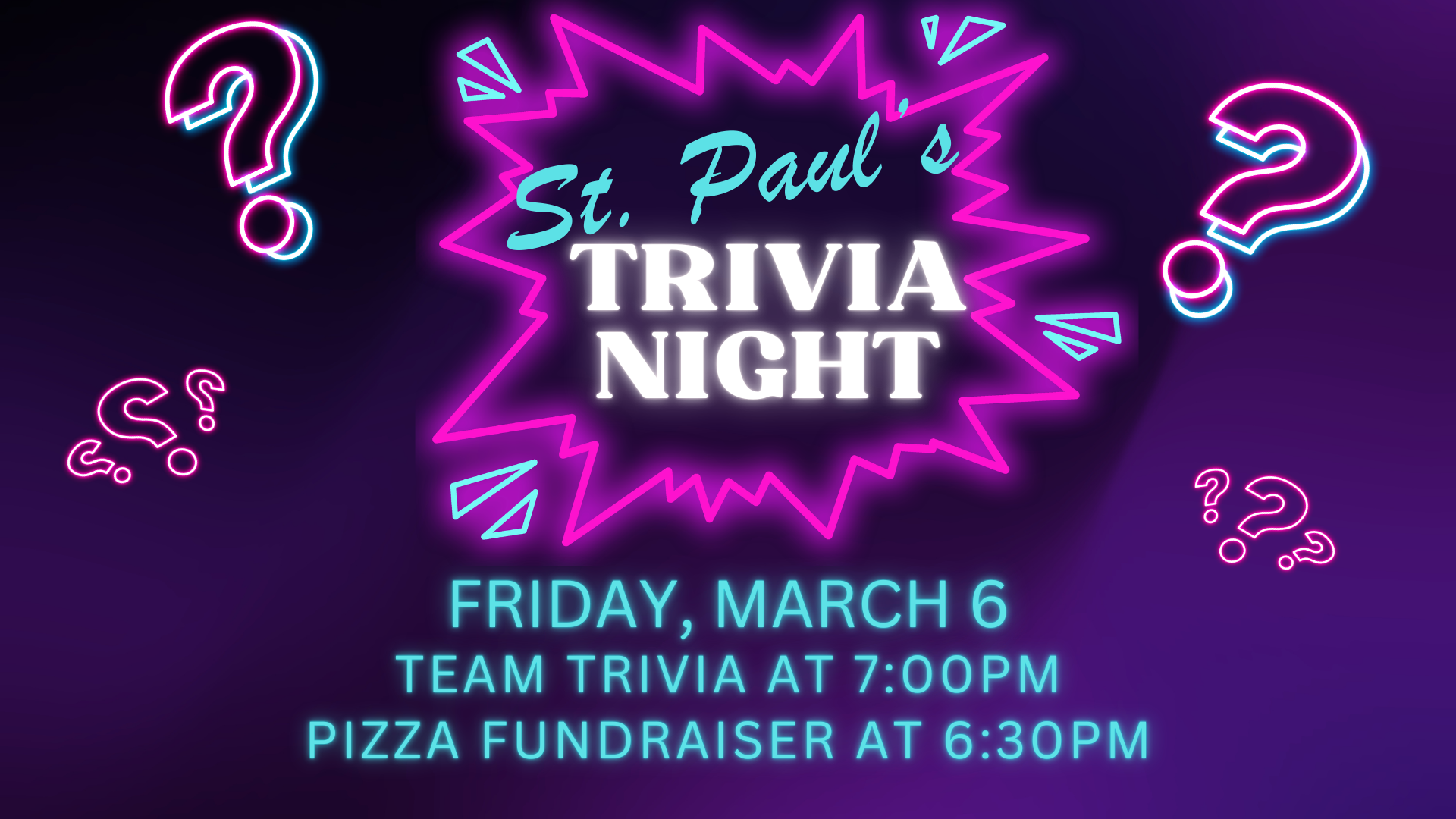 All trivia teams will be randomized to encourage folks to get to know someone they may not sit with on a regular basis. If you bring a friend who is new to St. Paul's, they will automatically be on your team AND your team will get a bonus point!